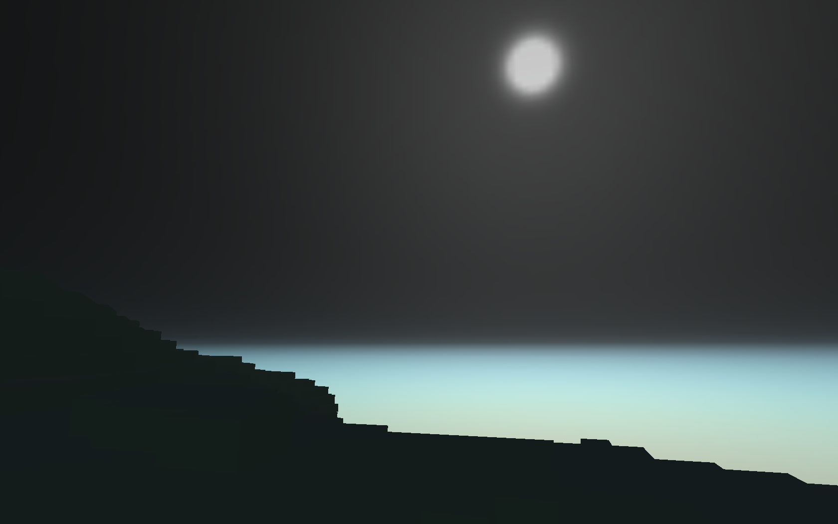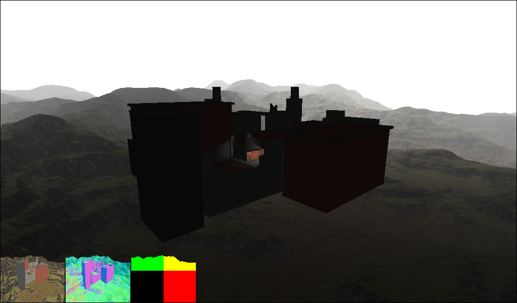 For the tessellation, I simply adapted Florian Boesch’s OpenGL 4 Tessellation to work with a cubic heightmap. It worked pretty much out of the box and allowed the culling to be performed on the GPU. The heightmap is generated in World Machine using a 2:1 width-to-height ratio, I then open it in Photoshop to apply some panoramic transformations. The whole process is described here. At first I was using HDRShop 1.0.3 just like in the tutorial but was only able to output the result as a RGB32 image. This loss of precision resulted in some rather nasty stepping artifacts when mapped on a terrain. I then moved to Flexify 2 and was able to output a proper 16bit greyscale image.